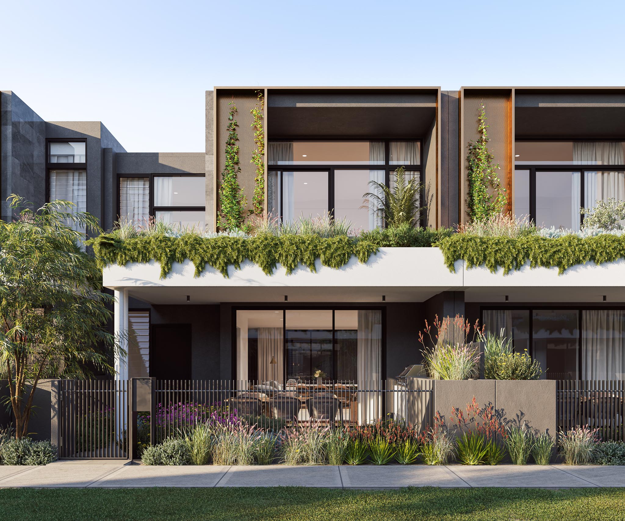 Designed by Space Collective Architects and built by CU Building Group, the Garden Homes showcase a contemporary style inspired by natural textures and tones. Created for those who appreciate indoor–outdoor living, these homes pair generous living spaces with a landscaped front garden and private internal courtyard, offering a peaceful retreat within one of Perth’s most vibrant new communities.