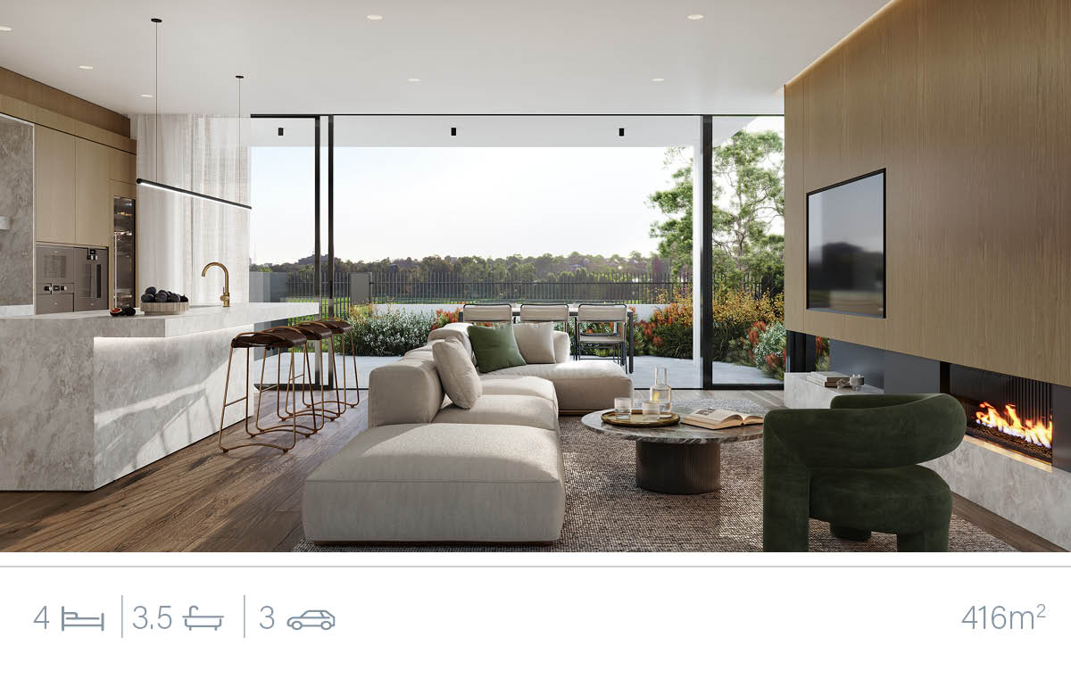 Inside, the Garden Homes are defined by your choice of two warm and natural colour palettes. Generous in spatial proportions, interiors are bathed in natural light, shining upon the high-quality finishes throughout.