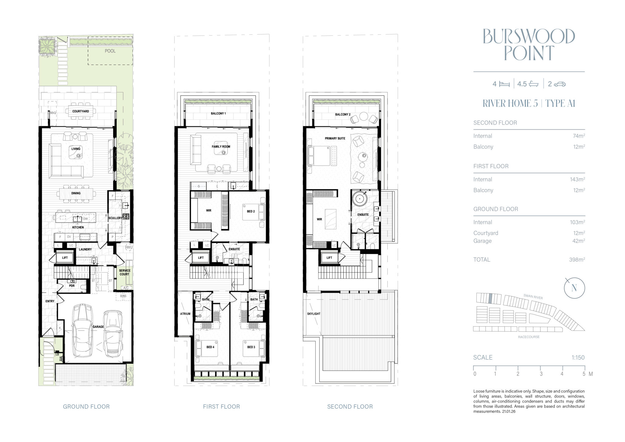 The River Homes are designed to complement the natural beauty of the river, using quality materials that feel modern yet timeless along Burswood Point’s most exclusive waterfront location. Two interior colour schemes and a range of premium upgrade options.
